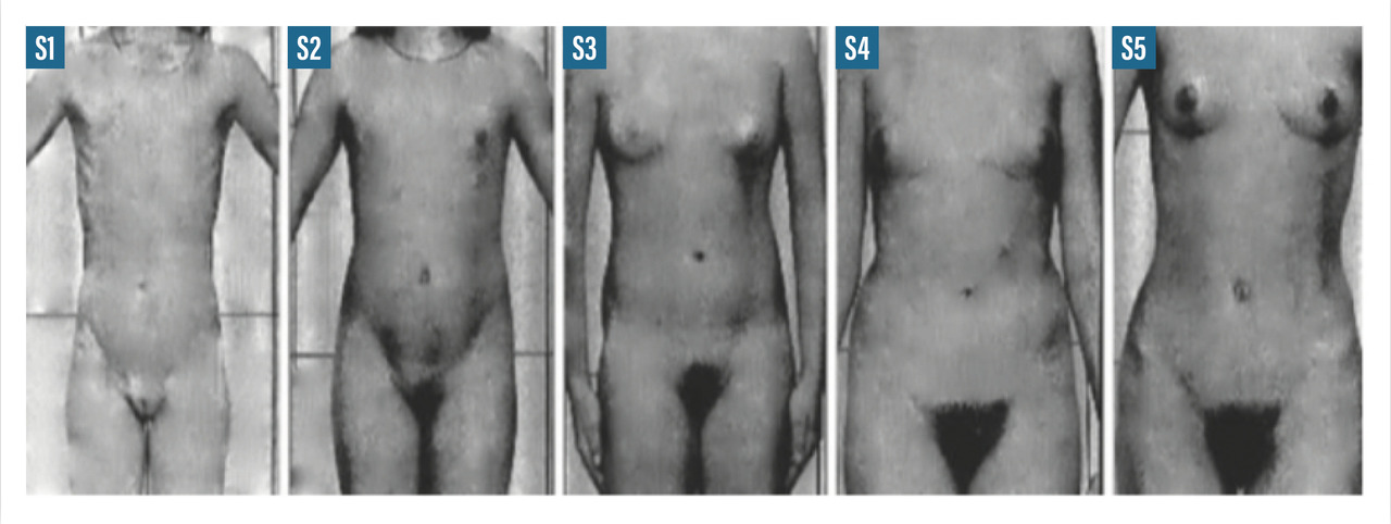 L’exploration d’une aménorrhée primaire débute par l’évaluation du stade pubertaire selon les stades de Tanner, classés de 1 à 5 (fig. 1).