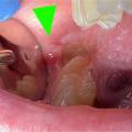 La péricoronarite (fig. 3) correspond à un accident d’éruption de la troisième molaire (dent de sagesse), survenant essentiellement chez le jeune adulte. La gencive forme un capuchon inflammatoire et douloureux venant recouvrir la dent, avec parfois un écoulement purulent à la pression.