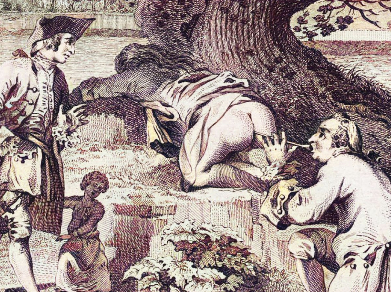Le rôle fondamental du tabac est indiscutablement attesté par l’expérience des Indiens de la Nouvelle-France rapportée par Marc Lescarbot lors de son voyage de 1611 : « Ces Sauvages avaient une manière assez singulière de faire revenir ceux qui étaient sur le point de se noyer et avaient avalé beaucoup d’eau. Ils remplissaient de fumée de tabac une vessie d’animal bien liée par une de ses extrémités. Ils attachaient à l’autre une canule et l’inséraient dans le fondement du malade puis, en pressant le boyau ou la vessie, ils faisaient entrer la fumée dans son corps. Ils le pendaient ensuite par les pieds à un arbre et la fumée, dont il avait le ventre plein, lui faisait rendre par la bouche toute l’eau qu’il avait bue » (fig. 1).