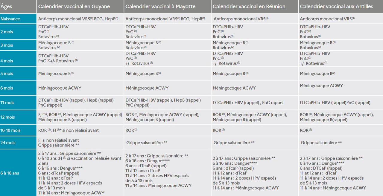 Santé publique France. Calendrier simplifié des vaccinations 2026 dans les DROM [Carte postale]. 27 avril 2026.