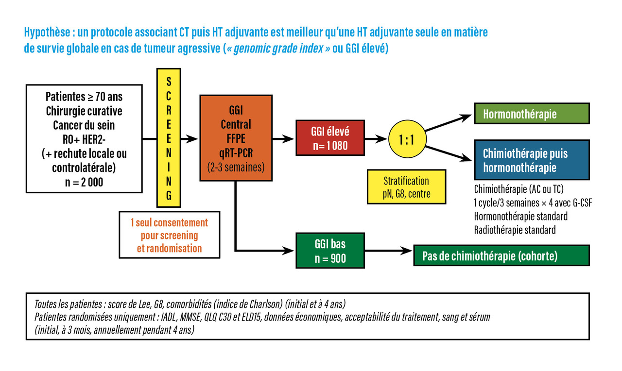 - utilisation d’un seul consentement éclairé pour le screening (recherche des tumeurs au GGI élevé) et la randomisation (chimiothérapie ou pas) ;