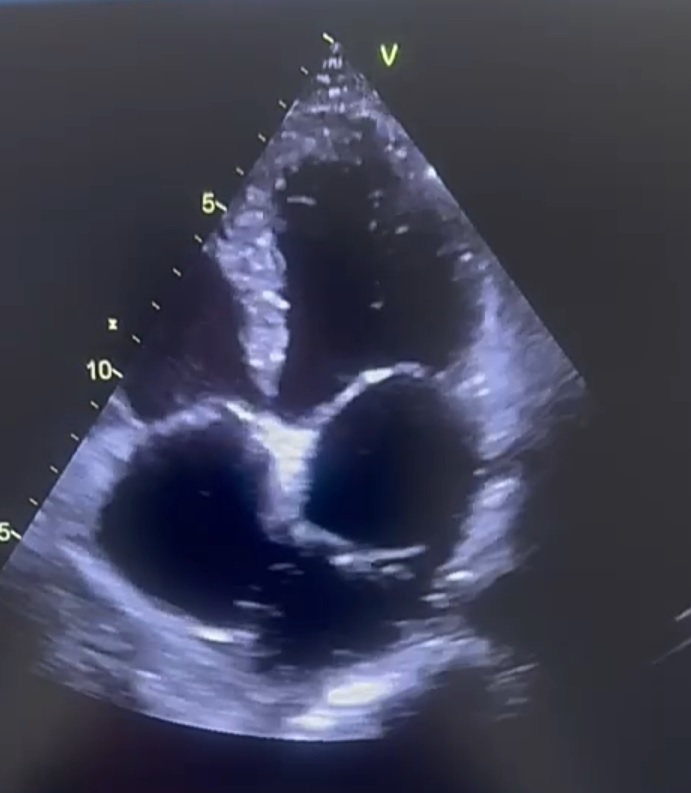 Un homme de 45 ans, sans antécédent de cardiopathie ni de facteur de risque cardiovasculaire, consulte pour une dyspnée d’effort de stade 2 de la New York Heart Association (NYHA) et des palpitations intermittentes. L’examen clinique révèle un souffle systolique d’intensité modérée au foyer tricuspidien sans signes d’insuffisance cardiaque droite. L’échocardiographie transthoracique et transœsophagienne montre une membrane totale dédoublant l’oreillette gauche en deux compartiments avec un shunt gauche-droite et une hypertension pulmonaire importante. Une exérèse chirurgicale de la membrane est décidée ; les suites ont été simples.