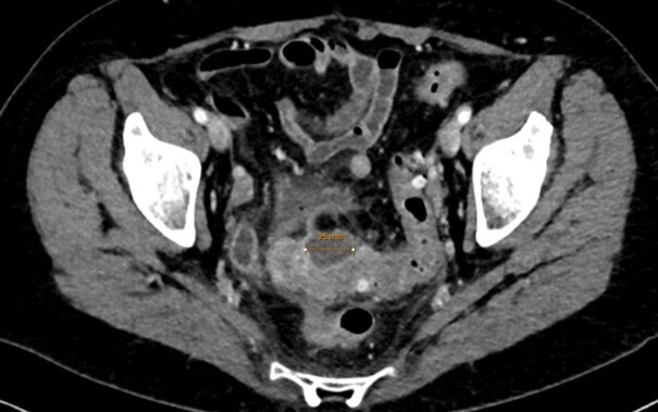 Le scanner abdomino-pelvien avec injection intra-veineuse de produit de contraste en l’absence de contre-indication (fig. 1) est recommandé en première intention pour le diagnostic et la recherche des complications ;1 l’IRM abdominale est une bonne alternative, notamment en cas d’allergie sévère au produit de contraste ou pour les femmes enceintes. L’opacification digestive basse n’est plus indiquée dans la prise en charge initiale. L’imagerie peut être discutée et parfois omise chez des patients aux multiples récidives et en l’absence de critères de gravité (péritonisme clinique, syndrome inflammatoire marqué…).