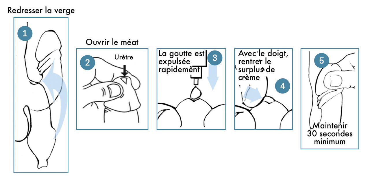 - pour la voie intra-urétrale, de l’importance d’instiller le produit à bonne température et de bien insérer l’embout dans le méat lorsqu’un traitement par voie intra-urétrale est indiqué.