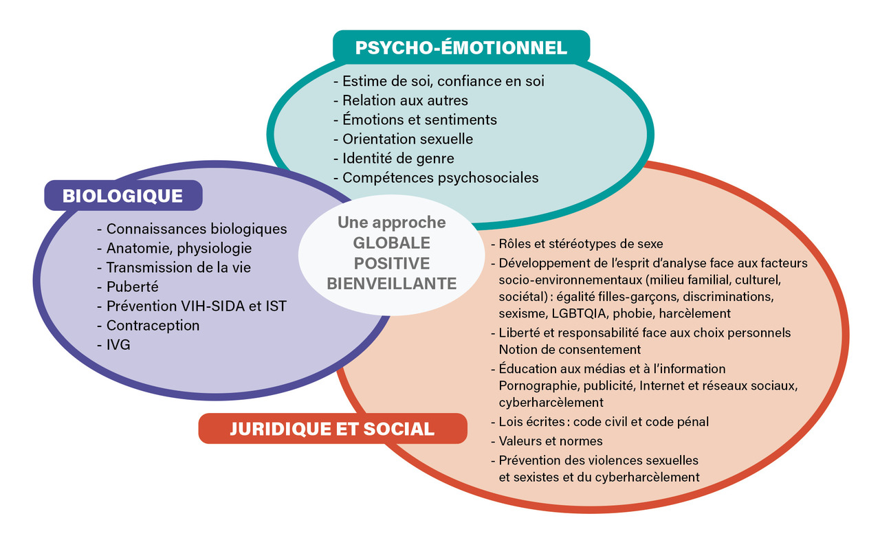 Si l’État reconnaît le rôle premier joué par les parents dans l’éducation à la sexualité, il met en avant la part de responsabilité de l’école, tant pour la dimension individuelle de la santé sexuelle (prévention des infections sexuellement transmissibles, prévention des grossesses non désirées) que pour son inscription sociale (prévention des violences sexuelles, lutte contre les préjugés de genre ou d’orientation sexuelle, prévention de conduites à risque).