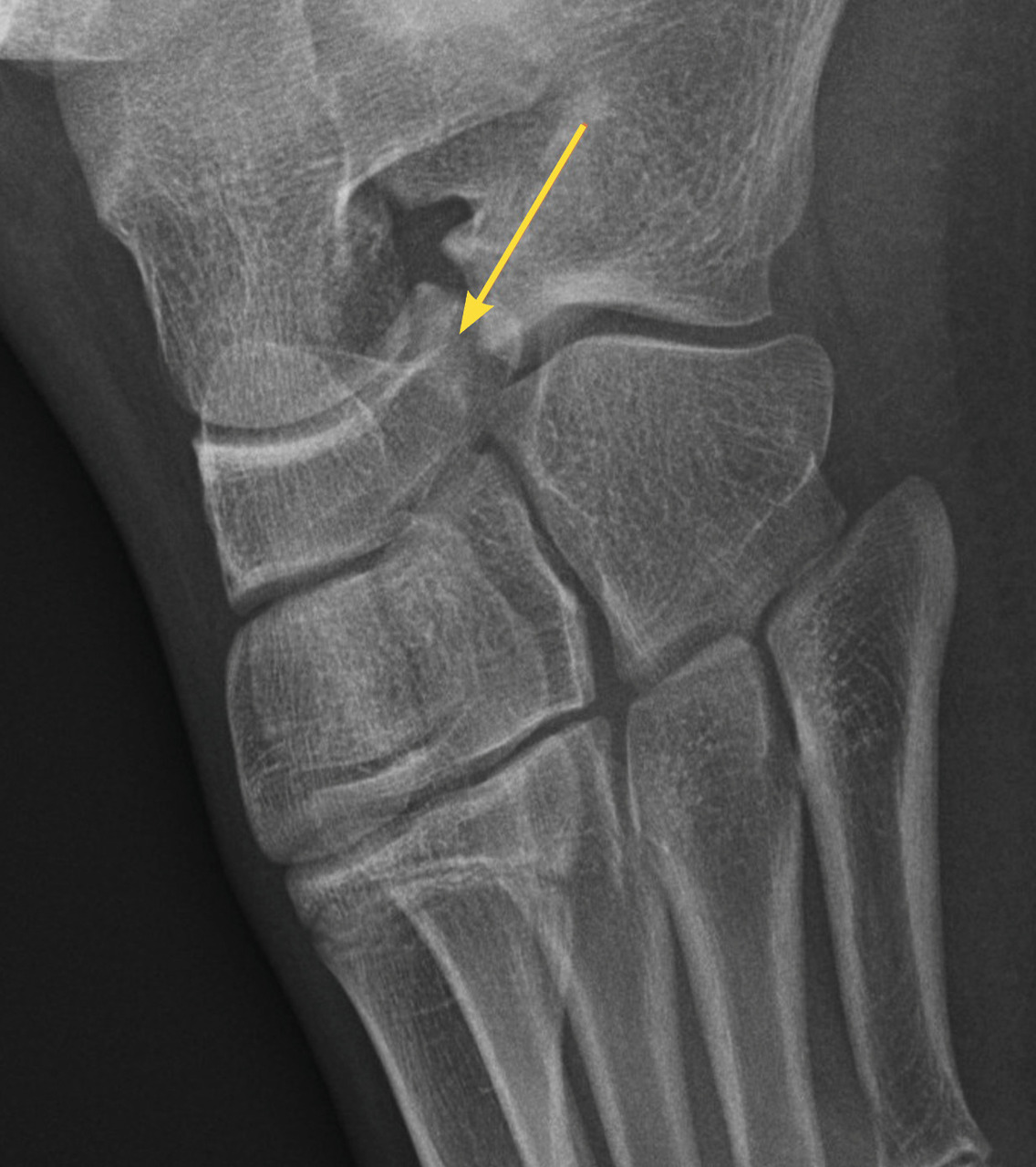 Chez l’enfant de moins de 10 ans qui consulte en urgence avec des signes cliniques nets (œdème, hématome, douleur importante, appui impossible), la radiographie est indispensable à la recherche de signes d’entorse grave, en particulier une avulsion de la pointe de la fibula.