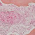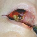 Les premiers symptômes de l’infection sont, là encore, peu spécifiques, marqués par une douleur sinusienne unilatérale associée à une rhinorrhée et/ou une obstruction nasale. L’important angiotropisme des Mucorales entraîne la formation de thrombi intravasculaires extensifs (fig. 3) et peut engendrer par diffusion une nécrose muqueuse intranasale, palatine (fig. 4), cutanée, orbitaire, voire intracrânienne (fig. 2). Une exophtalmie, un chémosis, des troubles de l’oculomotricité et une baisse d’acuité visuelle sont possibles en cas d’atteinte du sinus caverneux ou de l’orbite. L’envahissement de la base du crâne se traduit par des signes neuroméningés.