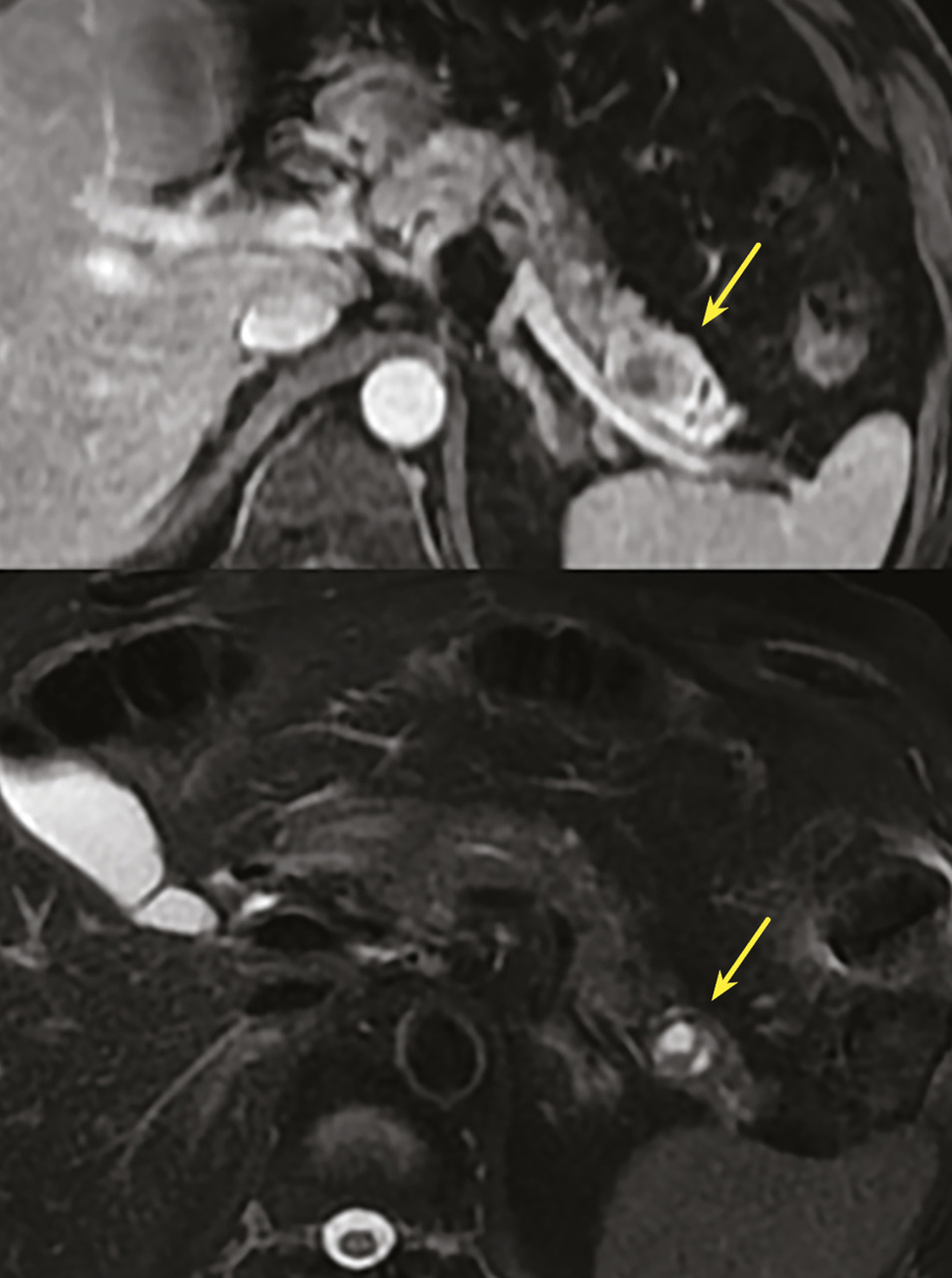 16. Delavaud C, d’Assignies G, Cros J, et al. CT and MR imaging of multilocular acinar cell cystadenoma: Comparison with branch duct intraductal papillary mucinous neoplasia (IPMNs). Eur Radiol 2014;24(9):2128‑36.
