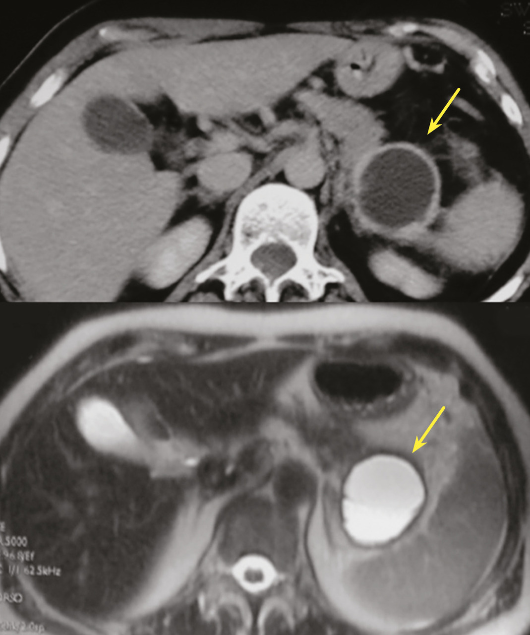 11. Di Paola V, Manfredi R, Mehrabi S, et al. Pancreatic mucinous cystoadenomas and cystoadenocarcinomas: Differential diagnosis by means of MRI. Br J Radiol 2016;89(1057):20150536.