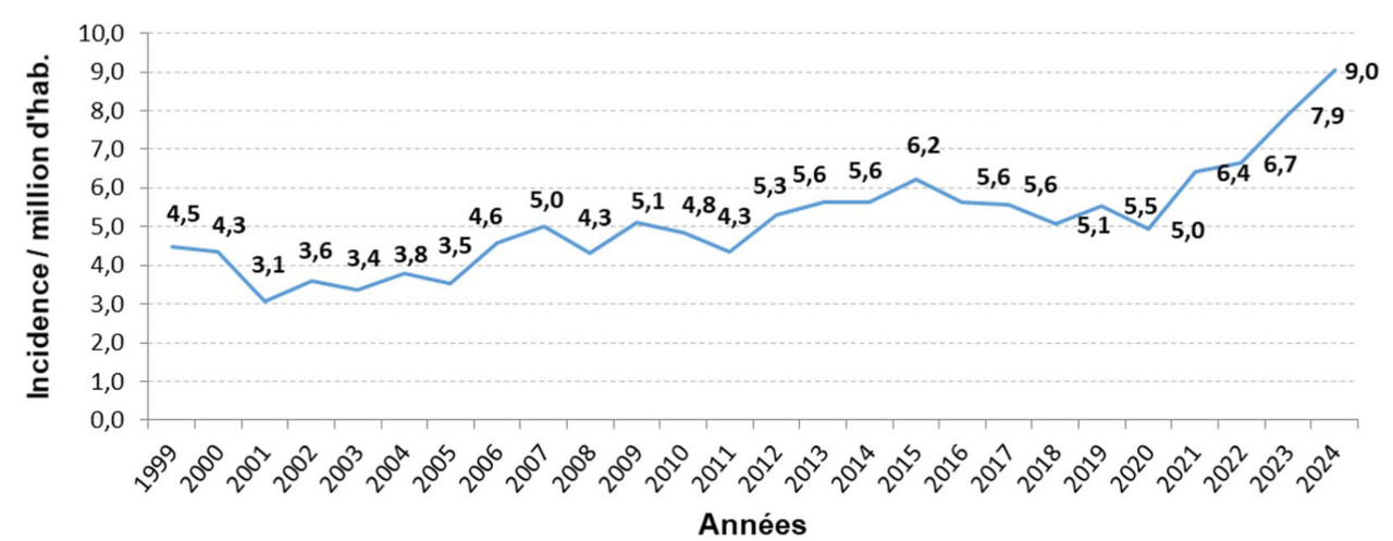 Depuis 2021, on observe une augmentation de l’incidence en France.