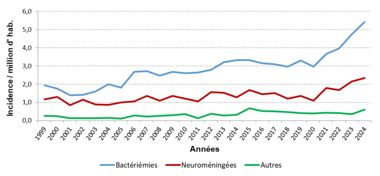 - L’augmentation concerne préférentiellement les formes bactériémiques et, dans une moindre mesure, les autres formes invasives non-materno-néonatales.