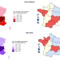 L’analyse géographique met en évidence une hétérogénéité de la répartition des cas incidents et des décès entre les territoires (voir figure ci-contre).