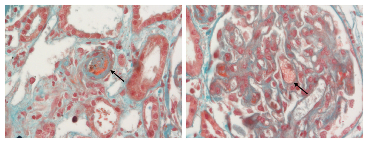 Le syndrome hémolytique et urémique (SHU) se distingue du PTT par un tropisme surtout rénal avec, à l’examen histologique, des lésions endothéliales et de nombreux microthrombi riches en fibrine.