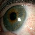 L’épisclérite est une inflammation située entre la conjonctive et la sclère (vasodilatation des vaisseaux épiscléraux superficiels), responsable d’une rougeur volontiers saumonée localisée (fig. 16). Elle nécessite l’avis d’un ophtalmologiste. Elle est souvent liée à un trouble de la surface oculaire (sécheresse oculaire et dysfonctionnement des glandes de Meibomius).