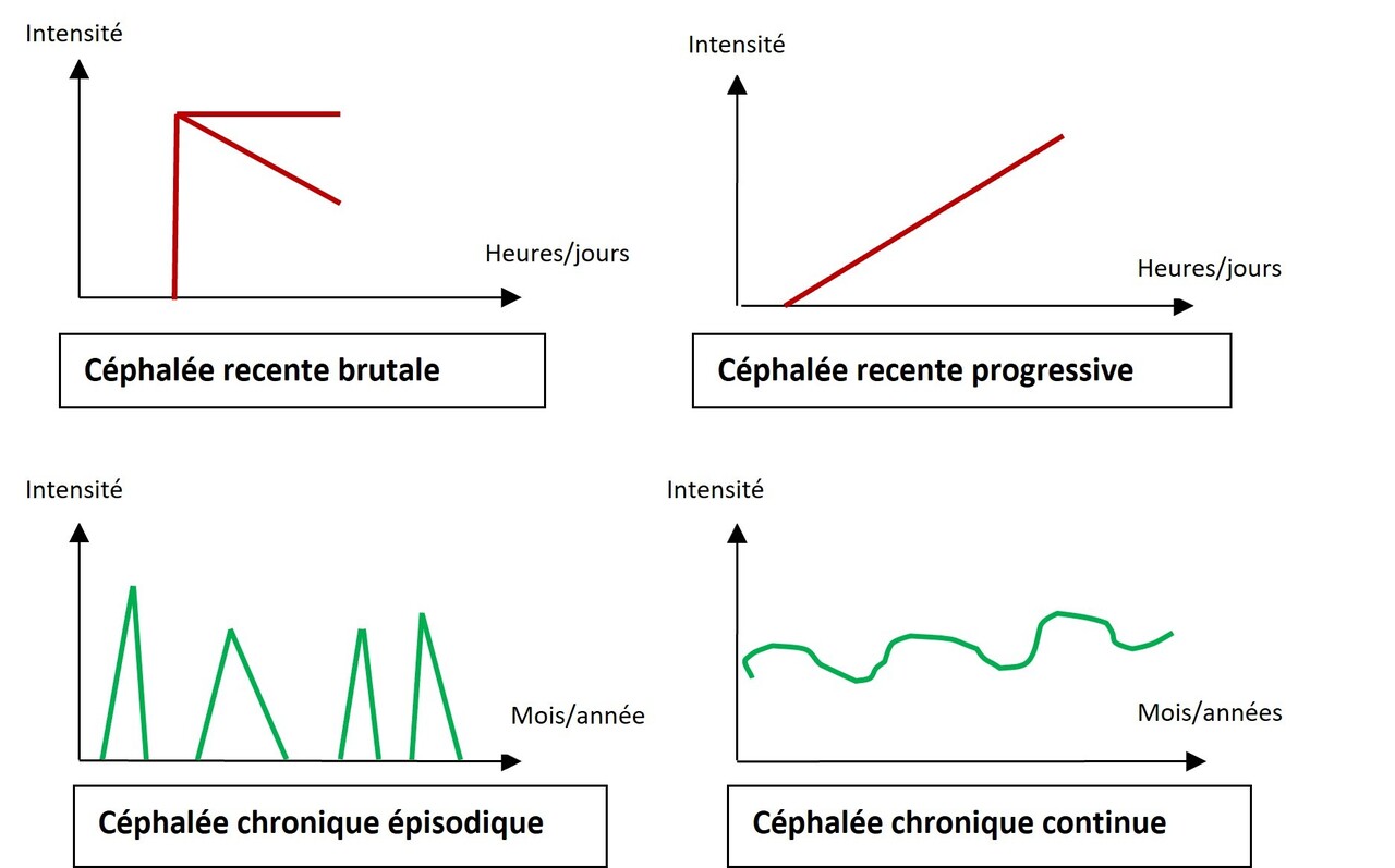 Selon les réponses, quatre profils évolutifs se distinguent (fig. 1) : les deux premiers correspondent, le plus souvent, à une céphalée secondaire et les deux derniers, à une céphalée primaire.