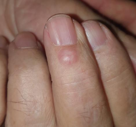 Le pseudokyste articulaire mucoïde du doigt est une lésion isolée et peu fréquente. Il survient le plus souvent chez les femmes à un âge moyen de 60 ans. Dans 75 % des cas, son origine est articulaire (arthrose de l’articulation interphalangienne distale). En général, il se situe sur le repli proximal des doigts (notamment des trois premiers) et des orteils.