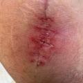Toute altération cicatricielle au-delà d’un mois après la chirurgie évoque une complication infectieuse, qui est certaine en cas de fistule sur – ou à proximité – de la cicatrice (fig. 6).