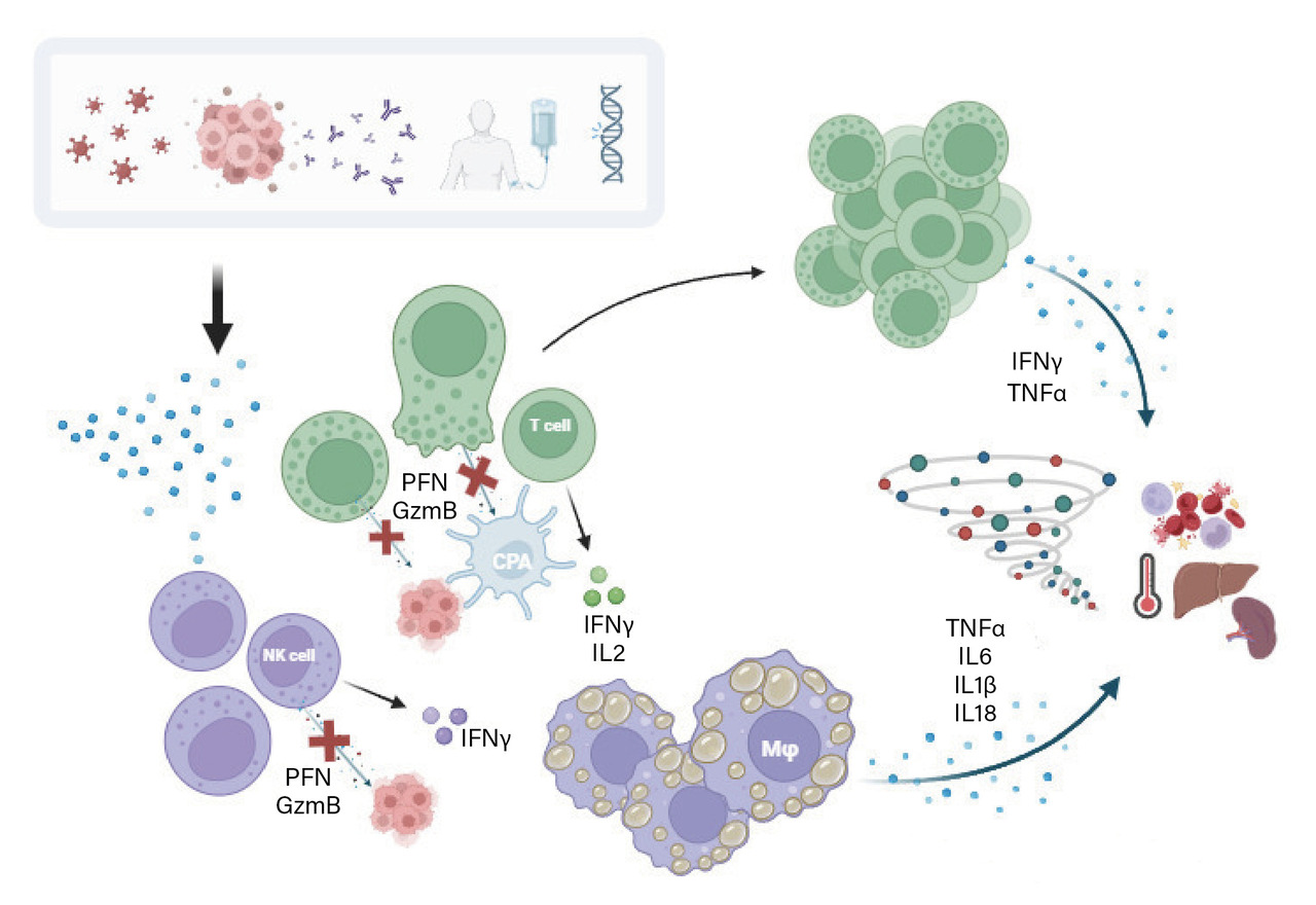 Depuis quelques années, les traitements des cancers par eux-mêmes sont des causes de SAM ; c’est le cas des inhibiteurs des points de contrôle de la réponse immunitaire et des thérapies par cellules T à récepteur d’antigène chimérique (CAR-T).13,14 Dans les deux cas, le système immunitaire est « boosté » contre les cellules cancéreuses, ce qui peut entraîner son activation excessive.