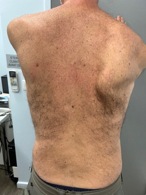 Devant ce tableau évocateur d’une dénervation de type syndrome de Parsonage-Turner, un électro-myogramme ainsi qu’une IRM de l’épaule sont réalisés. L’IRM de l’épaule montre une absence de lésion pathologique. L’électromyogramme révèle une atteinte isolée du nerf long thoracique droit avec signes de dénervation abondants. Un traitement par kinésithérapie à type de renforcement musculaire est prescrit. Le patient est réévalué à trois mois avec une récupération partielle.