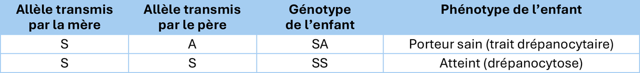 La drépanocytose est une maladie à transmission autosomique récessive. Il est donc important de proposer un dépistage du conjoint (électrophorèse de l’hémoglobine) pour évaluer le risque que le fœtus soit atteint par la maladie.