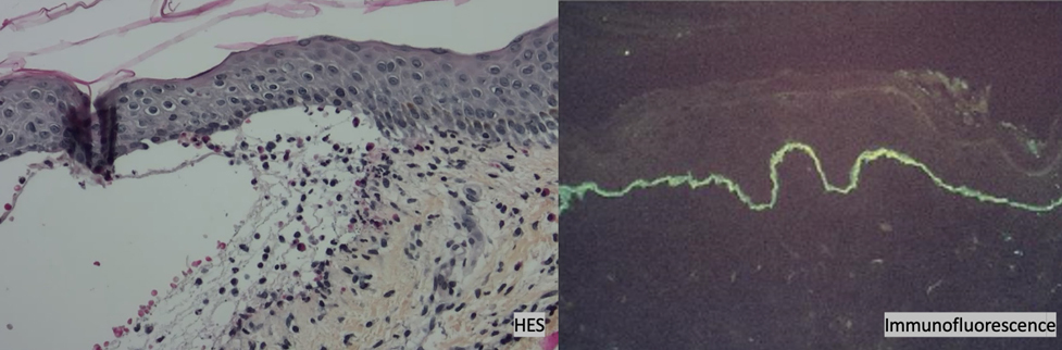Atteinte muqueuse typique, bulles flasques, sujet plus jeune.