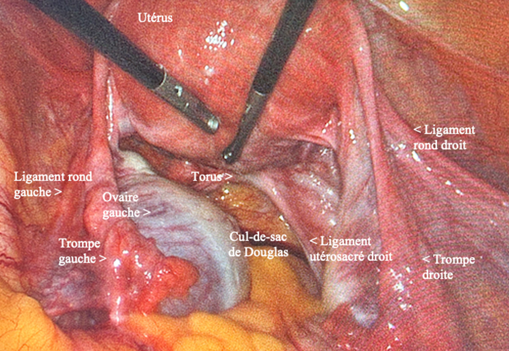 – lame d’épanchement dans le cul-de-sac de Douglas. Figure 1 (Rodolphe Matias de Sousa, La Revue du Praticien)
