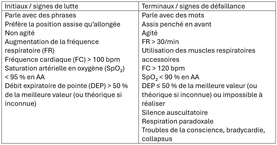 Near fatal asthma des Anglo-Saxons. Tableau d’insuffisance respiratoire suraiguë chez des hommes jeunes généralement percevant peu leurs symptômes malgré la gravité du tableau.