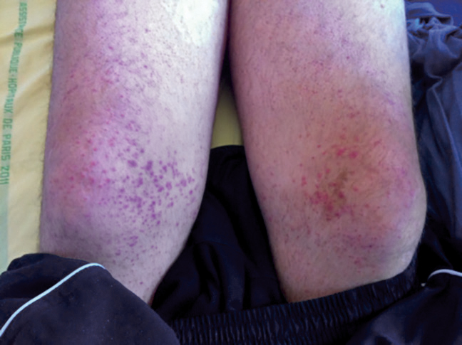 Purpura vasculaire des membres inférieurs chez l’adulte. Extrait de : Purpura rhumatoïde de l’enfant et de l’adulte