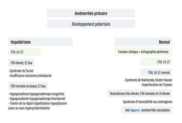 Figure 4. Extrait de : Aménorrhée Lire aussi ArticleAménorrhée ExerciceTestez-vous sur l’item 42 Article WebAménorrhée : des risques avérés en l’absence de prise en charge ! ExerciceQuel bilan effectuer devant une aménorrhée secondaire ? ArticleAménorrhée Article WebVaccins anti-Covid et troubles gynécologiques : conduite à tenir en MG